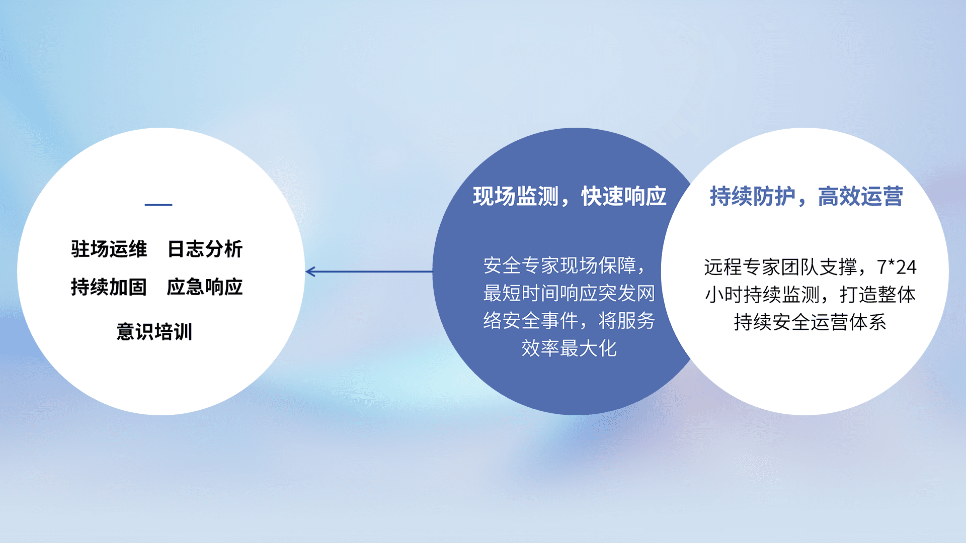 针对客户行业特性,,,,提供专属的一站式安全管理服务,,,帮助客户全面感知网络空间威胁,,通过安全专家的线上、、、、线下防护支持,,实现风险闭环,,,,将安全保障常态化,,为客户打造常态化安全运维运营服务。。